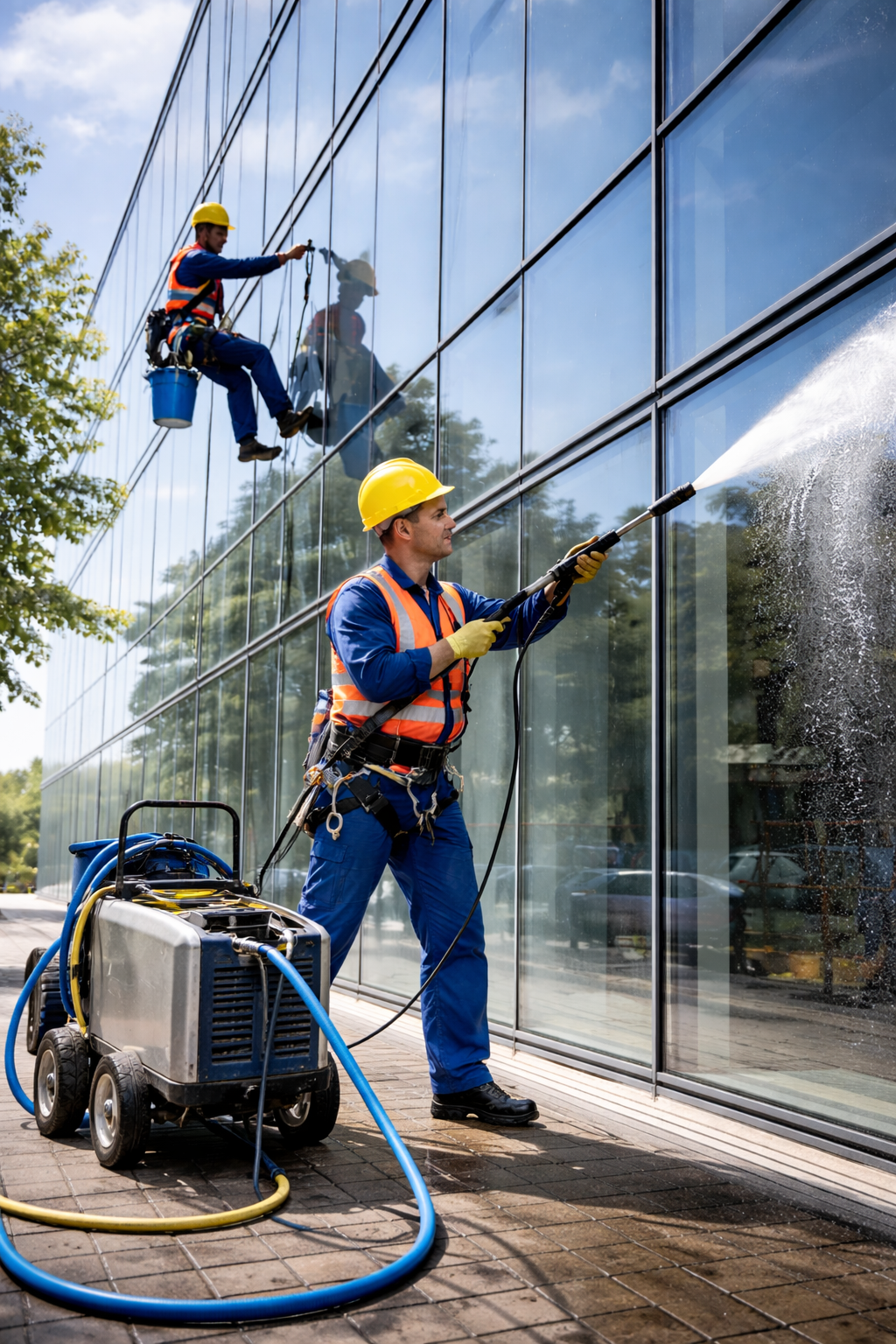 Die Gebäudereinigung außen sorgt für Sauberkeit, Schutz und ein gutes Erscheinungsbild des Objektes.